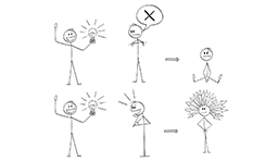 Eine kreative Atmosphäre entsteht, wenn Ideen zunächst ohne Einschränkungen geäussert werden können. Die Devise lautet: Quantität vor Qualität. Erst in einem zweiten Schritt werden Ansätze kritisch hinterfragt und weiterentwickelt.